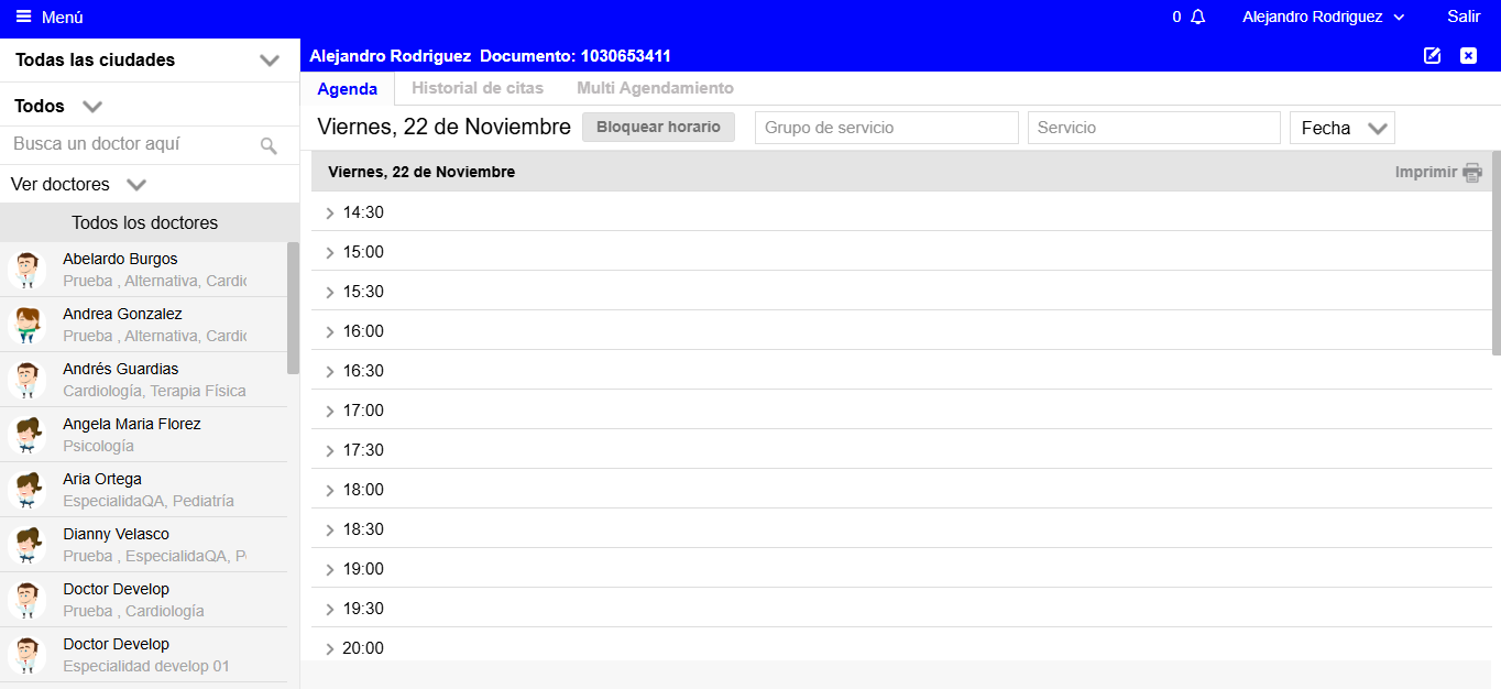 2. Ingresas al agendador el cliente y en la parte de debajo, das clic en funcionario.