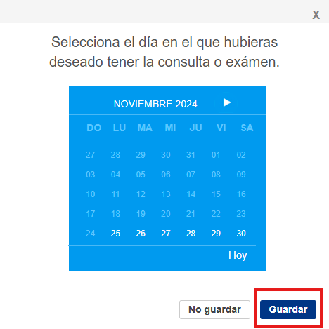 Si el paciente elige otra fecha, selecciona la nueva opción y guarda los cambios. (Ver Imagen 10)