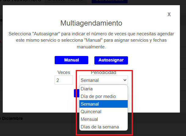 Define el número de citas requeridas o selecciona "Manual" para agendarlas individualmente. (Ver Imagen 13)