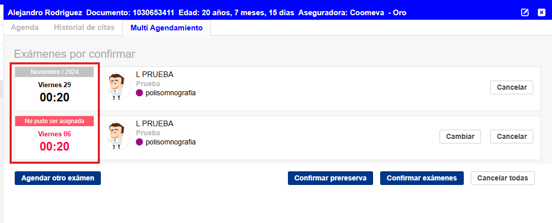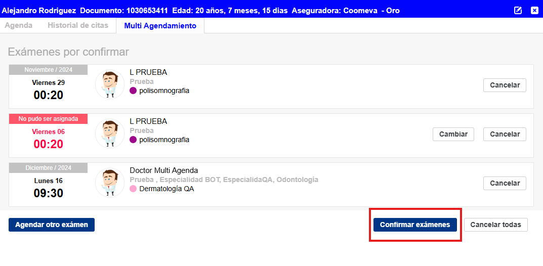 Si es necesario, repite el proceso para otro examen y confirma las citas una por una. (Ver Imagen 15)