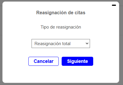 Cuando el usuario da clic en siguiente tiene el mismo comportamiento que cuando selecciona la opción de “Reasignación total”.