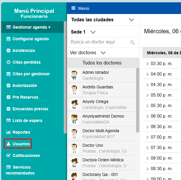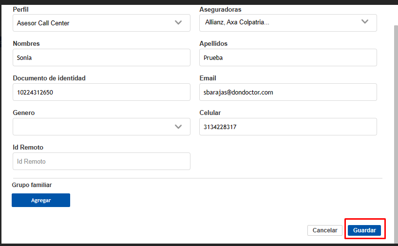 6. ¡Listo!, con la parametrización previamente realizada el asesor solo podrá gestionar usuarios o citas relacionadas única y exclusivamente con las aseguradoras que fueron asociadas a su usuario.