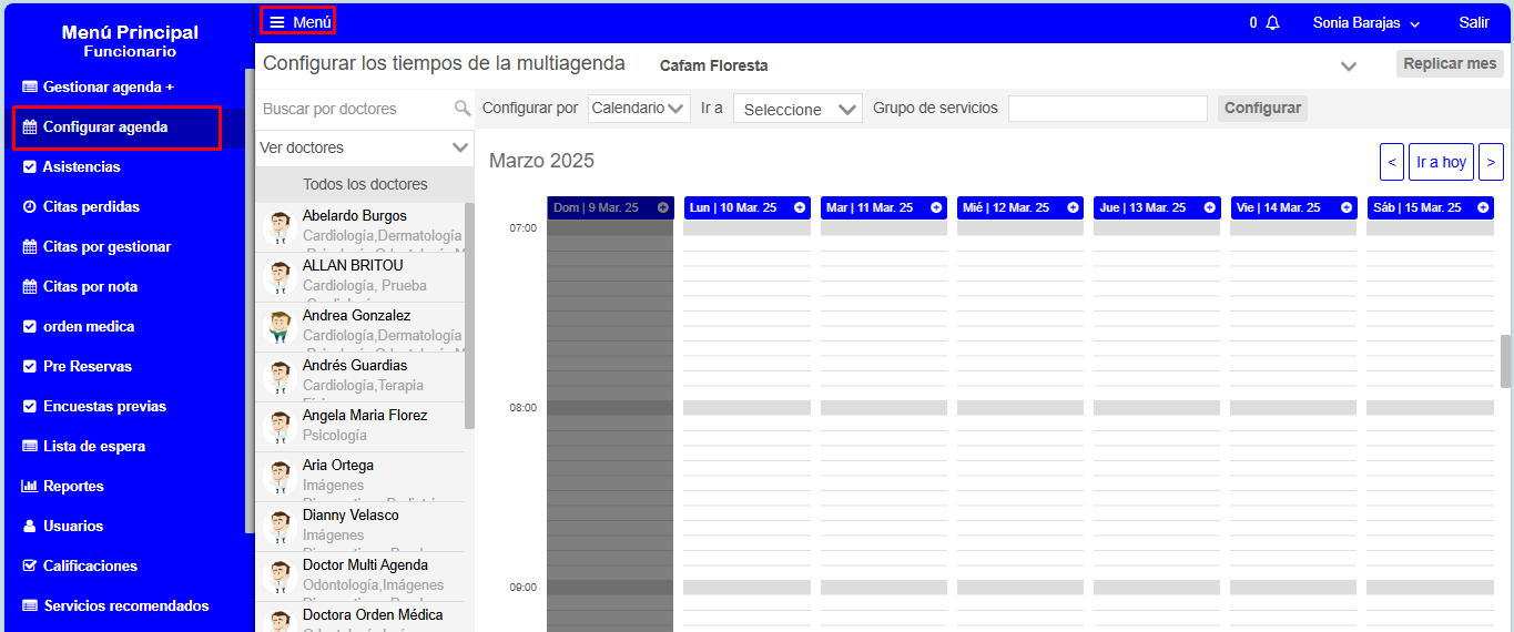 Ingresa a Menú>Configurar agenda, como se evidencia a continuación: