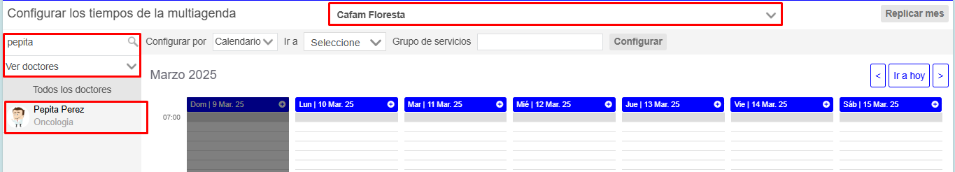 Una vez ingreses al módulo debes seleccionar la sede y el doctor al cual le vas a modificar la agenda: