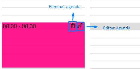 Para modificar la agenda debes dar clic en el lápiz y para eliminarla en el ícono de basura: